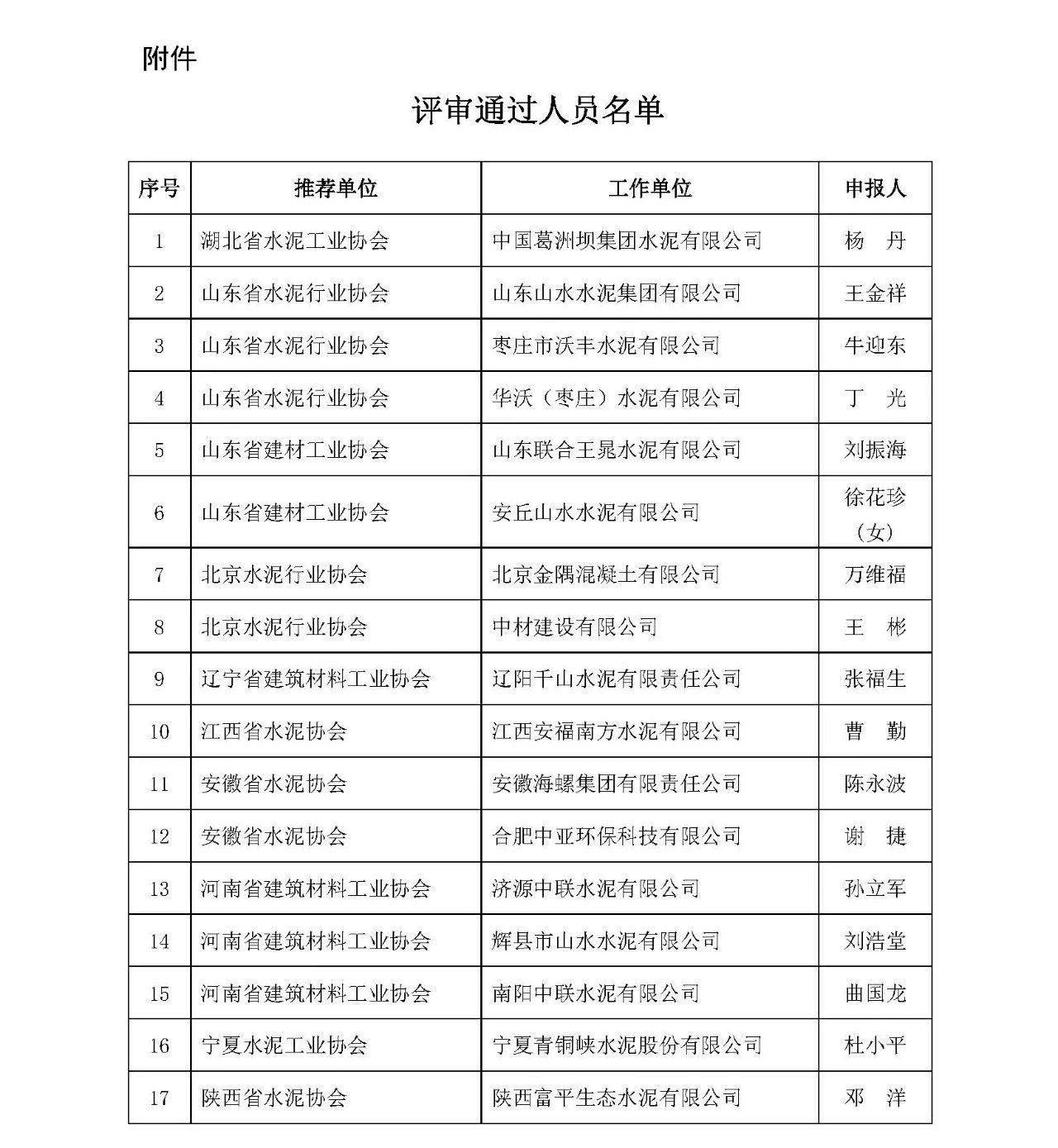 2023年水泥行業(yè)優(yōu)秀總工程師評選工作按照既定程序,由水泥行業(yè)領導、專家組成的評選委員會,對各省市自治區(qū)水泥(建材)協(xié)會推薦的人員及申報資料進行了認真細致的評審,楊丹、王金祥等34人(名單附后)通過了評審,根據(jù)《關于開展2023年水泥行業(yè)優(yōu)秀總工程師評選活動的通知》的規(guī)定,現(xiàn)予以公式。公示期2023年7月24日起至2023年8月6日止。在公示期間內,如對評審結果有異議,清將意見發(fā)送到:
