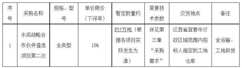 2.項目名稱:水泥戰略合作伙伴遴選項目第二次